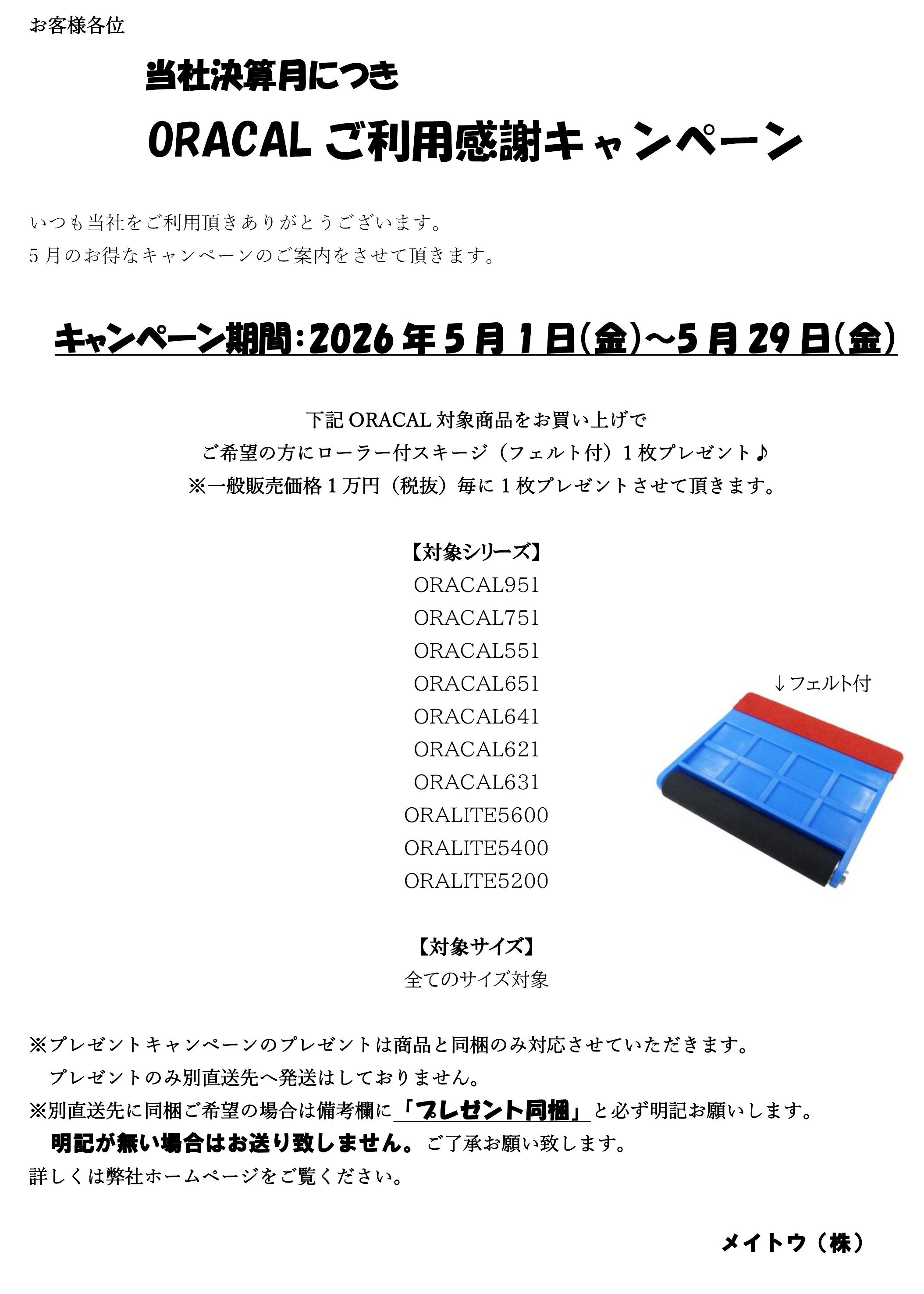 ORACAL対象商品キャンペーンローラースキージプレゼント