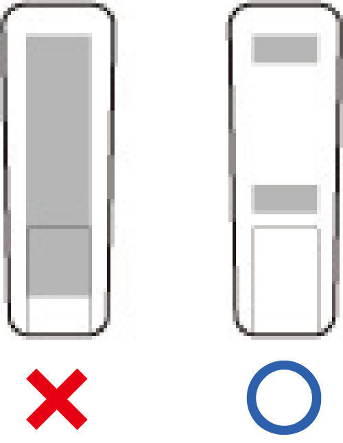 本品粘着はとても強力です。紙や壁紙に利用しないでください。また、固定や仮止めの場合も右図例のように貼り付けるモノ全体にテープを貼る必要は無く、小さなサイズに切ったテープを数カ所貼るだけで、固定や仮止め、滑り止めが可能です。