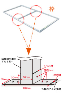 看板アルミ枠組立用スクラム部材短時間で組立て出来るアルミ製スクラム部材アルミコーナー部材とスリム角材と従来の30mmアルミ角をビスでとめていけば強固な