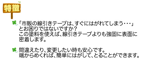 ・線を引く時に使用する定規・段ボールなどは、横へ動かすと塗料がのびてしまいます。
