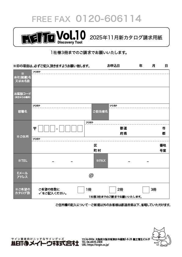 フリーFAX 0120-606114 (対応時間/9:00~16:00 休日/土曜・日曜・祝日)